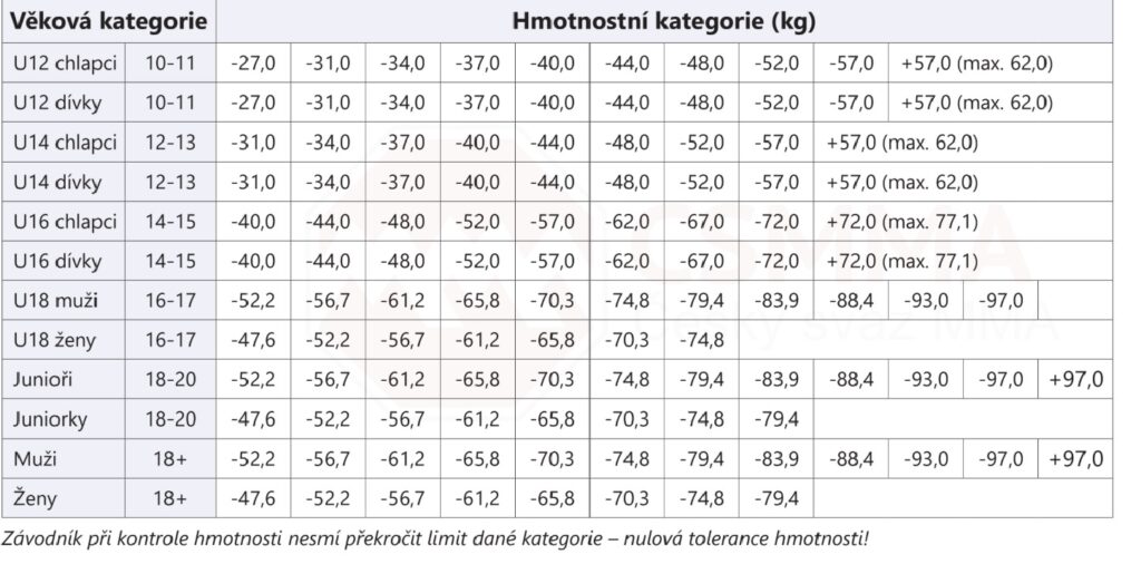 - 8:30 – kontrola hmotnosti, registrace, lékařská prohlídka, pravidla